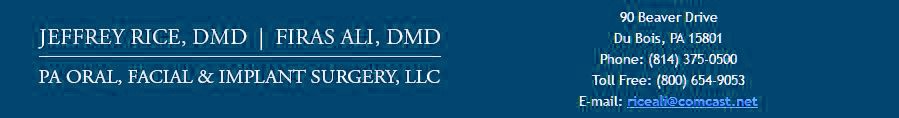 The site originally represented the joint professional practice of Dr. Jeffrey Rice, DMD and Dr. Firas Ali, DMD, two oral and maxillofacial surgeons practicing in Du Bois, Pennsylvania. Their partnership brought together traditional oral surgery, implant dentistry, facial pathology, and elective facial cosmetic procedures within a single regional center.
